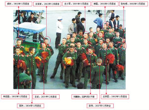 调查组还找到2004年12月退伍后,现仍在拉萨市打工的邵洪(照片左第二排第二个),他也同样确认,照片是大家在分发剧服时被拍摄的。照片中的人除刘鹏勃外,其余都已退伍或转业。因时间较长,一些战友的名字刘鹏勃和邵洪已记不清楚。调查组把他们所能叫出名字的战友图像在照片上进行了标注。据悉,当时在拍摄过程中,武警官兵共扮演了三次群众角色:第一次是在大昭寺广场,第二次是在布达拉宫正门围墙外东侧,第三次是在布达拉宫正门内西侧空地。