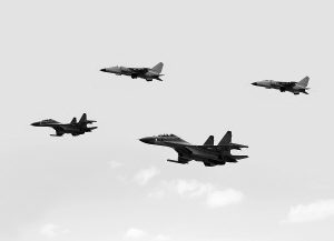 2日,空军航空兵某师按照新大纲新增的“组合战术机动”课目进行长空对抗。