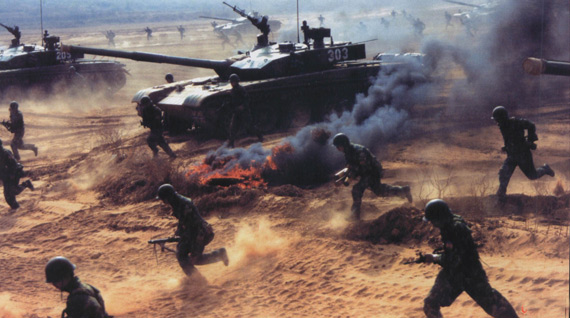 北京军区王牌装甲团99坦克与步兵协同进攻[资料图片]