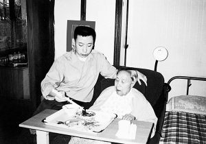 送走了老首长,有位老干部的家属点名要王晓兵到家里做护理。服务处领导征求意见,王晓兵二话没说,就去报到了。一天,他姐姐突然打来电话,说父亲因公严重受伤,生命垂危。王晓兵赶忙请假登上了返乡的汽车,当他赶到医院的时候,大声呼唤深度昏迷中的父亲。然而一切都晚了,年仅49岁的父亲再也没有醒来。料理完父亲的后事,原本想多陪陪母亲尽尽孝,可一想到北京的老首长,王晓兵只好含着眼泪,强忍悲痛告别母亲,一步一回头地离开了家乡。