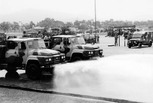 图为广州军区某集团军防化团应急救援洗消演练现场。谭昶摄 |