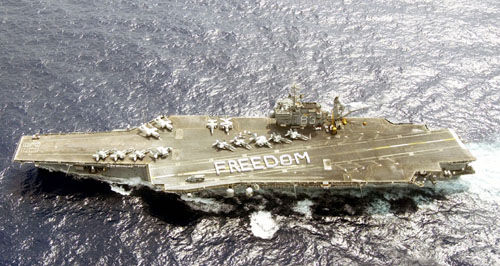 美国派遣庞然大物般的“华盛顿”号核动力航母常驻西太平洋地区,引起了广大亚太国家的关注。据美国合众国际社报道,美国高级新闻分析人士西夫认为,美国对庞然大物般的核动力航母的迷恋,是过分自信的结果。二战结束以来,美军航母横行世界许多海区,从来没有被击沉过,包括1950年的朝鲜战争、上世纪60年代的越南战争、1991年的海湾战争、1999年的科索沃战争、2001年的阿富汗战争和2003年的伊拉克战争。美国许多人认为,这些战争表明,美国航母是不可战胜的。美国一些军政要员更认为,“华盛顿”号核动力航母犹如海上永久漂浮的堡垒,可以比“小鹰”号常规航母更有效地显示美国的威慑能力。