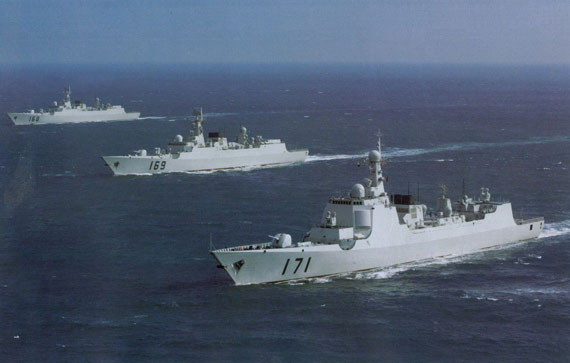 资料图:中国海军新型导弹驱逐舰编队海上大规模军演