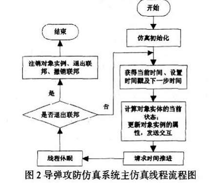 首先启动RTI即打开一个全局的RtiExec进程,再依次运行各个邦元,联邦由仿真管理器成员创建。仿真管理器对仿真的开始、暂停等控制采用定义同步点的方式实现。实践证明,基于HLA开发导弹攻防仿真系统可以大大减少系统开发的工作量,降低其复杂性,提高可靠性。在完整开发FOM/SOM基础上,应用系统可以即插即用,提高了可重用性。